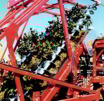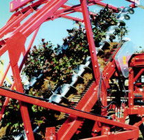 Für grössere Sträucher mit brüchiger Beastung sind herkömmliche Klemmbandroder nicht geeignet. Um die "gewachsene" Orientierung der Pflanzen beizubehalten ohne Klemmung mussten neue Wege erkundet werden. Unter Nutzung der praktischen Erfahrung und in Zusammenarbeit mit dem Kunden entstand ein Roder und ein Fördersystem das die Pflanzen sehr schonend "hoch schraubt" ohne Klemmung. Die Hauptvorteile sind schonende Pflanzenförderung ohne Verlust der Orientierung der Pflanzen und dadurch einfaches, rationelles Handling der Pflanzen.